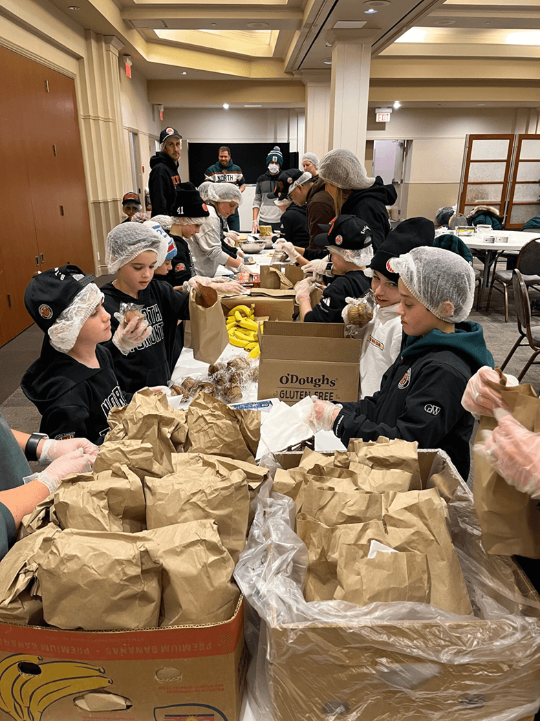With the same energy and teamwork they bring to every game, the team came together to prepare over 100 lunches for community members in need. This initiative served as a powerful reminder that while we love the game, hockey is about much more than wins and losses, it’s about showing up, giving back, and making a real difference in our community.